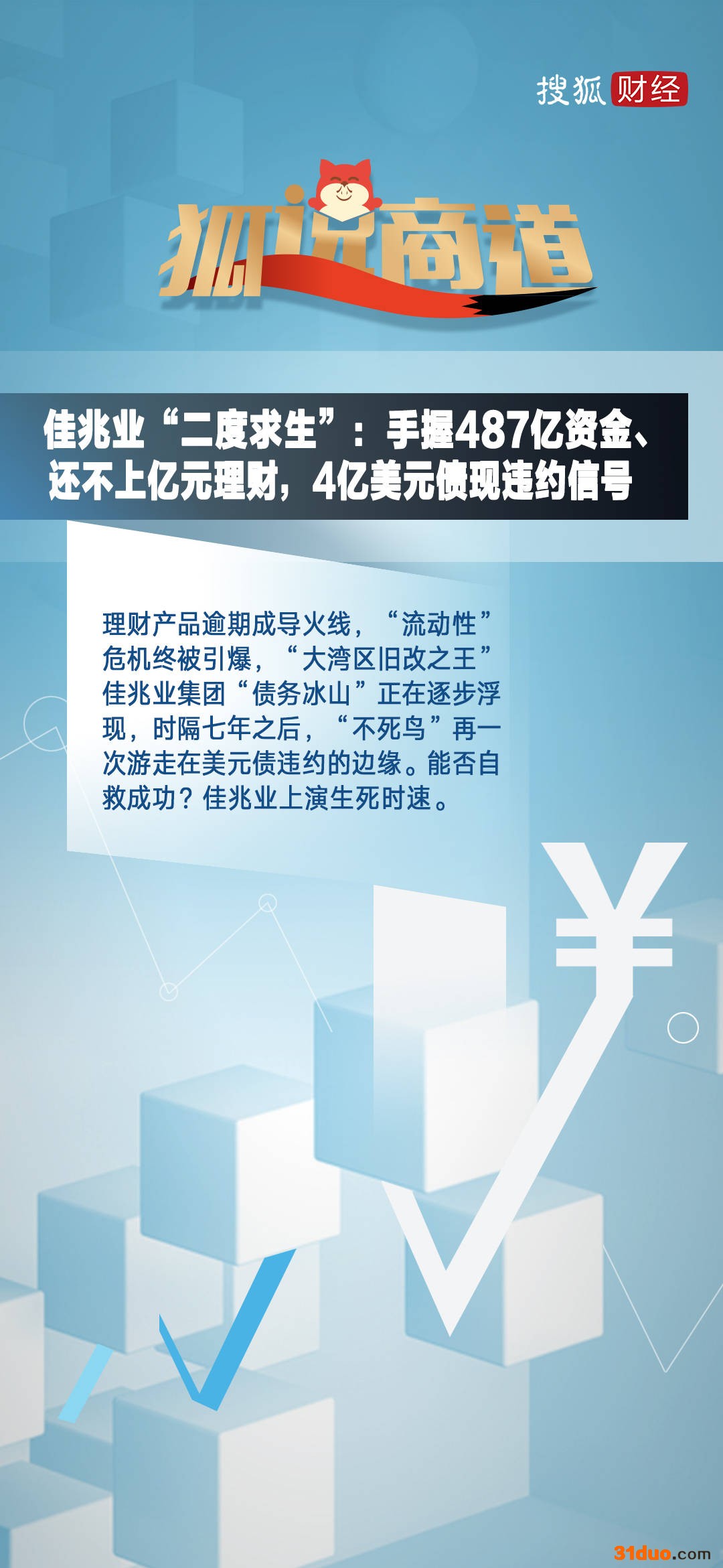 佳兆业“二度求生”:手握487亿资金、还不上亿元理财,4亿美元债现违约信号