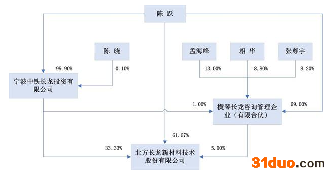 从公司股东来看,北方长龙共有3名股东,分别是陈跃(持股比例61.67%)、长龙投资(持股比例33.33%)、横琴长龙(持股比例5%)。其中,陈跃持有长龙投资99.9%的股权,持有横琴长龙为69%的股权;且横琴长龙为北方长龙实施员工股权激励而设立的有限合伙企业,长龙投资持有横琴长龙1%的股权。