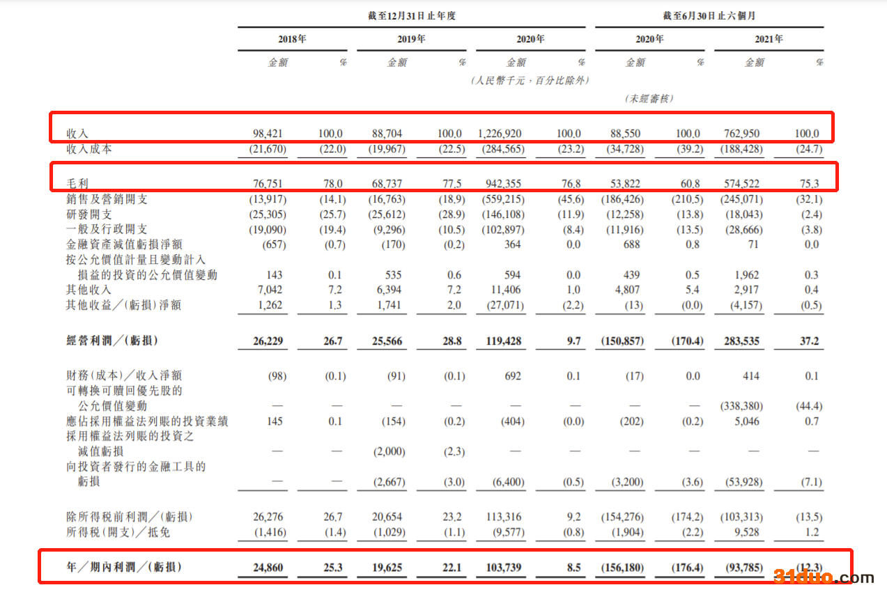 招股书显示,青瓷游戏2018年-2021年上半年营收分别为9842万元、8870万元、12.27亿元、7.63亿元。同期,毛利分别为7675万元、6874万元、9.42亿元、5.75亿元;青瓷游戏于2018年、2019年及2020年,公司的年内经调整利润净额(非国际财务报告准则)分别为3890万元、2230万元及1.66亿元,三年间的复合年增长率为106.8%。