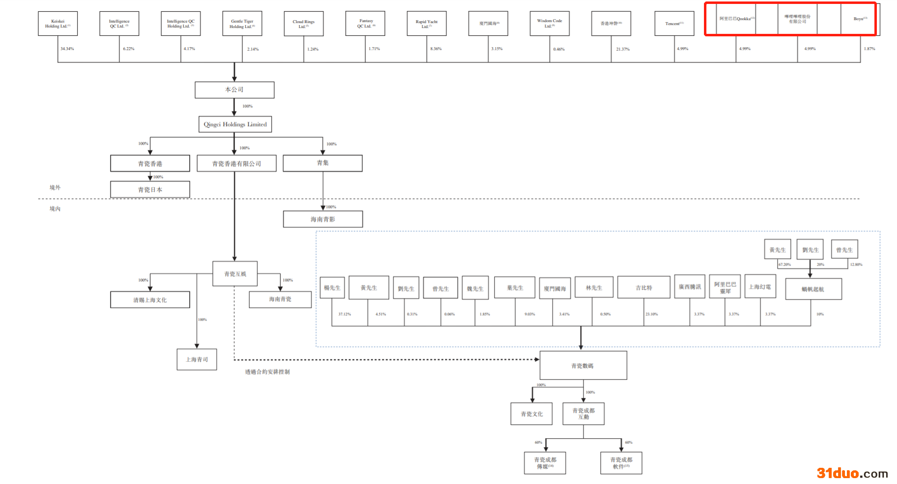 IPO前,腾讯、阿里、B站分别持股为4.99%,博裕资本持股为1.87%。