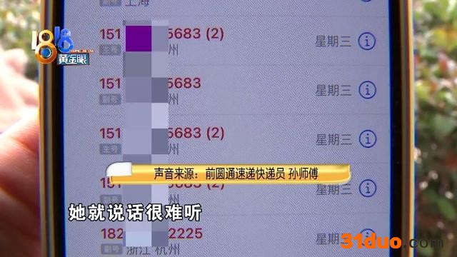 前圆通速递快递员孙师傅:“接一个投诉电话我们要罚钱的,过了两天我给她打电话,你有必要吗,她就说话很难听,激起来了,然后我就骂了她一句 (看到给她打了很多个电话) 有的快递到了我们叫她来取快递 (为什么不给她送到家门口) 你送到家门口,我们不是说就这一个快递,人家是精准派,设置好的,快递柜放不下,一看放不进去,送上楼去了,她这个快递柜可以放进去的,随机不会想去看这个字眼的,拿起来能投进去的就投进去了。”