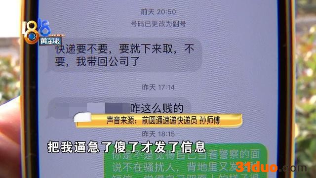 孙师傅表示,现在吴女士的快递已经放到了圆通速递的客服部,至于短信,他承认是他发的。
