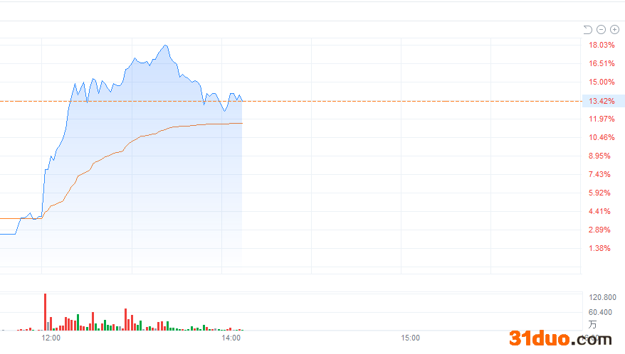 财联社(上海 编辑 周新旸),英伟达的品牌合作伙伴栢能集团(01263.HK)午间发布盈利预告,2021年度股东应占溢利同比爆增约9.65倍。消息一出,其股价不断攀升,一度涨17.5%,现报17.92港元,涨13.03%,市值69.42亿港元。