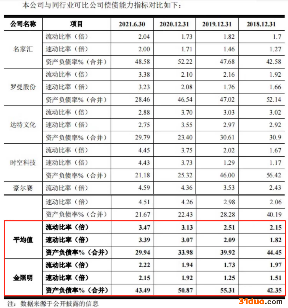 对于偿债能力不及同行业可比公司,金照明在招股书中表示“随着公司上市后融资手段多样化,公司偿债指标能够进一步优化”。