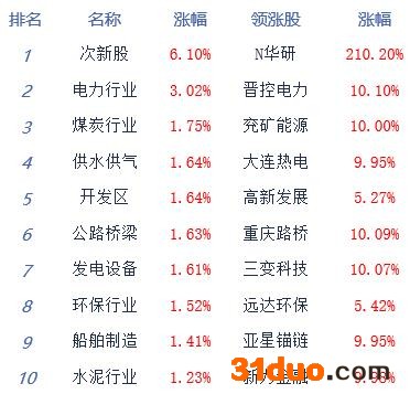 A股市场板块及个股涨跌幅排行