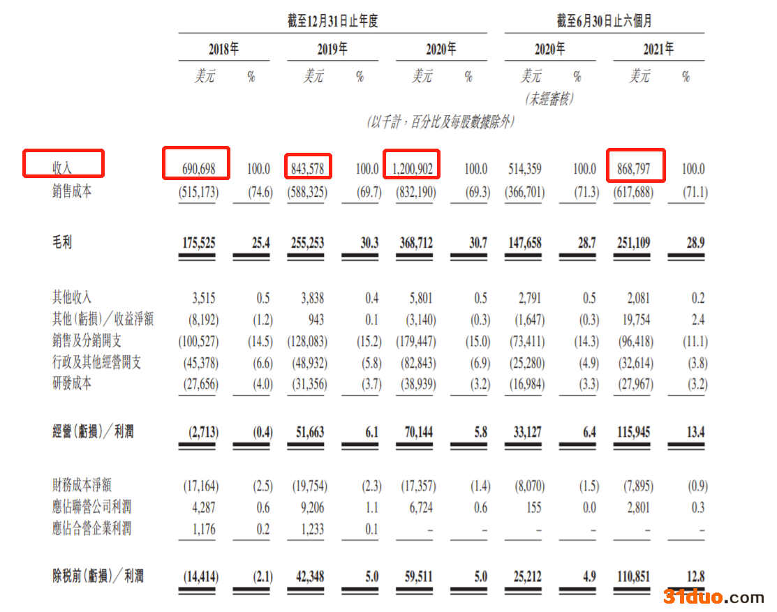 财务数据方面,泉峰控股2018-2020年,收入分别为6.91亿美元、8.44亿美元和12亿美元,复合年增长率达31.9%,2021年上半年收入达8.69亿美元。2018-2020年及2021年上半年经营利润分别为-271.3万美元、5166.3万美元、7014.4万美元和1.16亿美元,逐年增长。