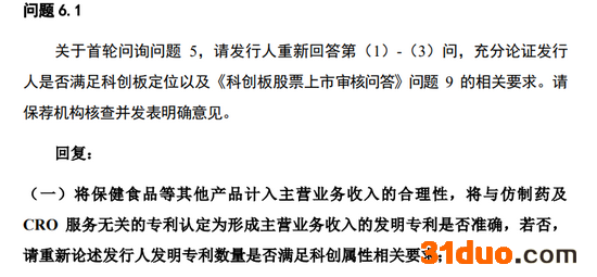 为使公司符合“硬科技”定位,宣泰医药在此次申报中将占比不足3%的保健食品纳入主营业务,并将相关专利认定为形成主营业务收入的发明专利。此举收到了监管问询,上交所要求宣泰医药说明将保健食品计入主营业务的合理性,以及将相关专利认定为形成主营业务收入的发明专利是否准确。