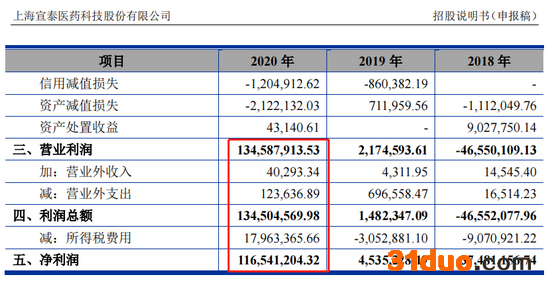 新浪财经发现,宣泰医药招股书上会稿显示2020年净利润为1.23亿元,而此指标在申报稿中为1.17亿元,增加了686.17万元。营业利润较申报稿增加了794万元。