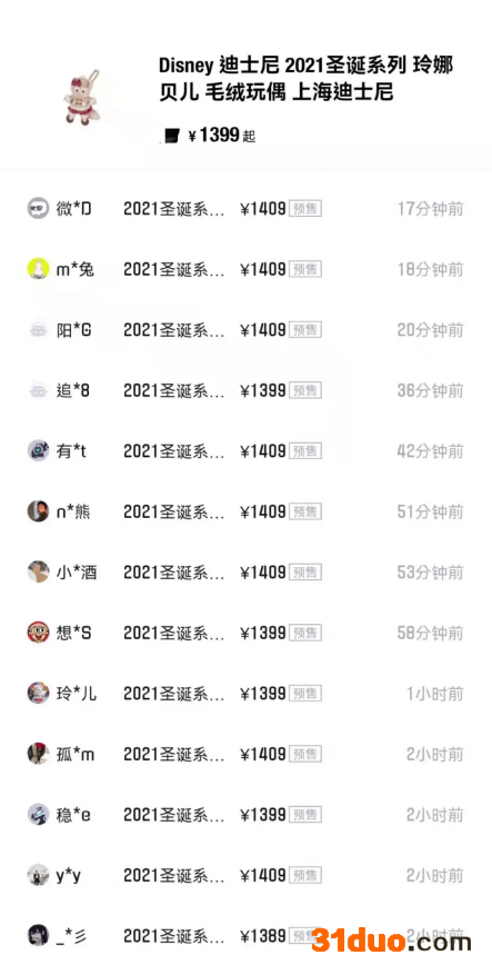 12月12晚,上海迪士尼“顶流明星”玲娜贝儿的三款商品“常规款玲娜贝儿毛绒玩具”“2021圣诞系列玲娜贝儿毛绒玩具”以及“2021圣诞系列玲娜贝儿毛绒玩具钥匙圈”开启预约购买,再次引发关注。