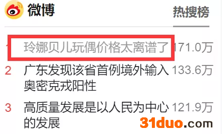 12月13日,话题#玲娜贝儿玩偶价格太离谱了#也登上微博热搜第一。