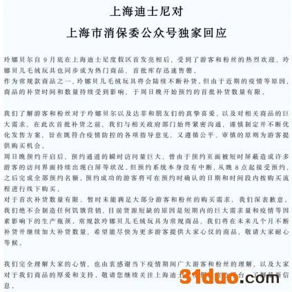 另外,上海市消保委公众号特地就此事问了迪士尼,对此,上海迪士尼表示,绝不会制造任何饥饿营销: