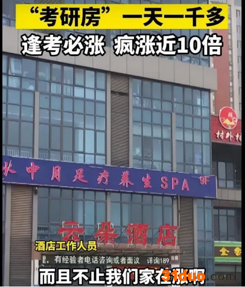 据山东商报山海视频,山东济南,有网友反映研究生全国统一考试考点附近酒店一房难求,不少房价翻10倍,原本114元的普通单间一夜之间涨至千元。