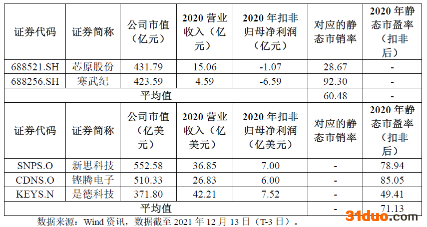 12月16日,概伦电子正式启动IPO申购,网上申购代码为787206,股票代码为688206。公司发行价为28.28元/股,对应市销率(2020)为89.24倍。预期将募得资金12.27亿元,略高于募投计划金额。