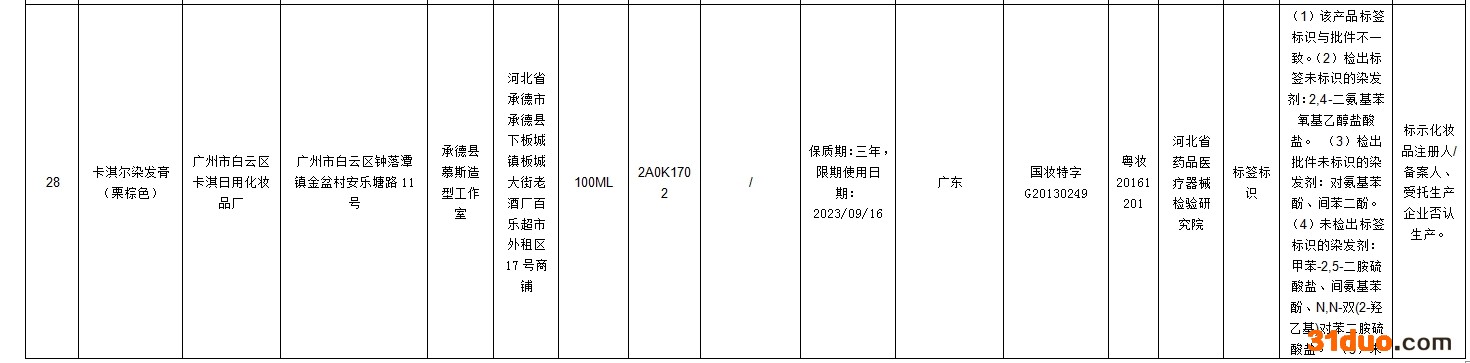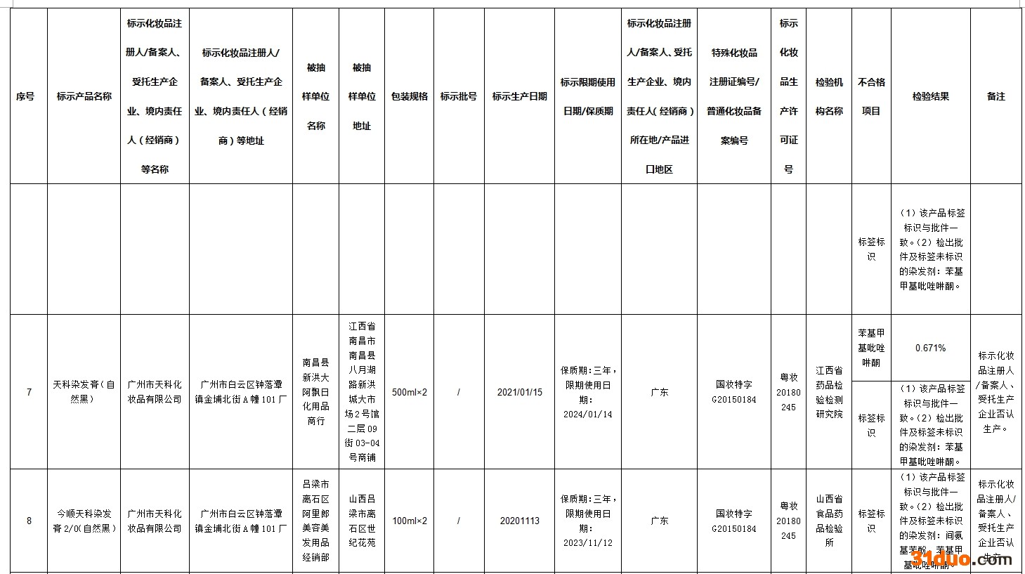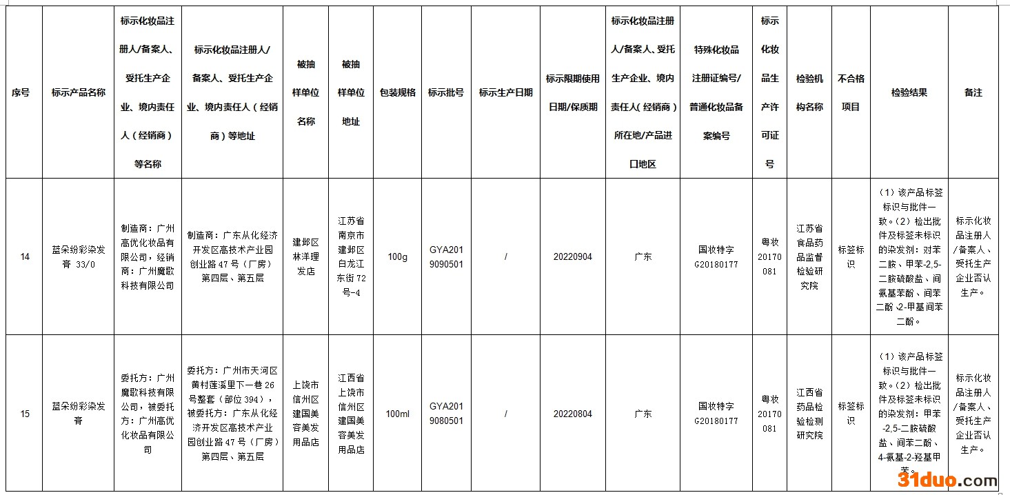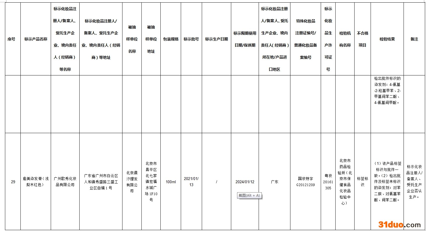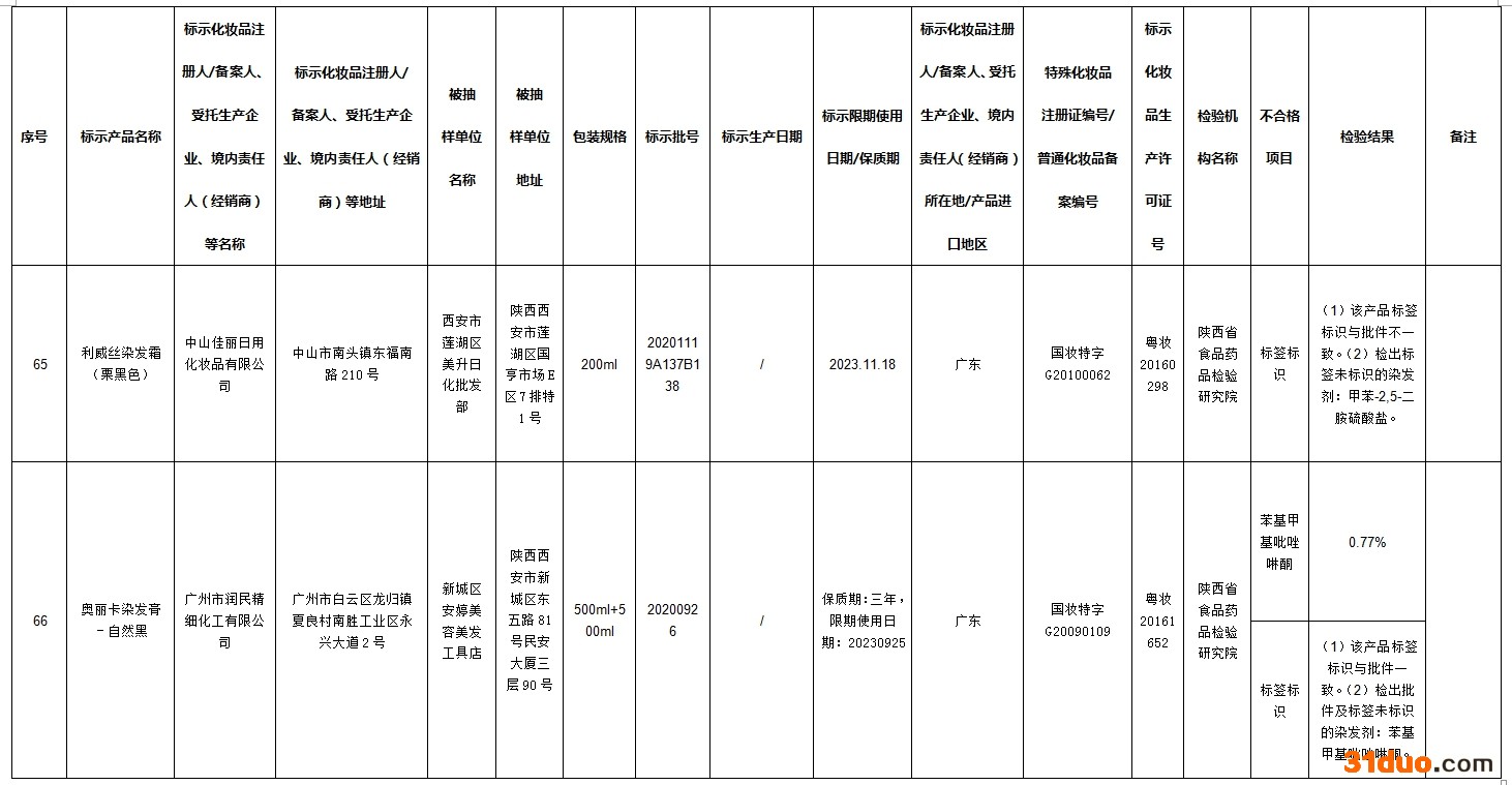 中新经纬12月16日电 据国家药监局网站消息,在2021年国家化妆品监督抽检工作中,经河南省食品药品检验所等单位检验,标示为广州市润民精细化工有限公司生产的奥丽卡染发膏-自然黑等72批次化妆品不合格。