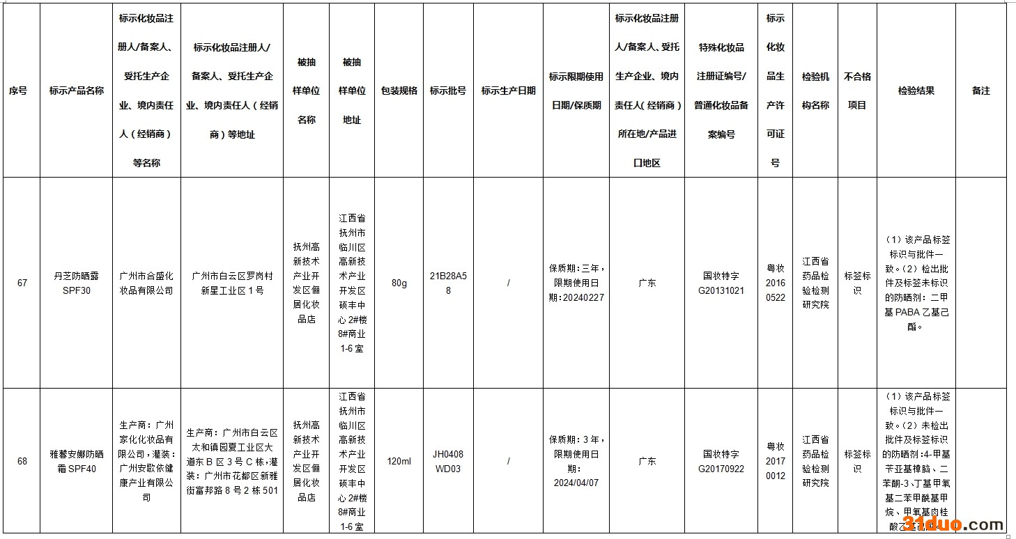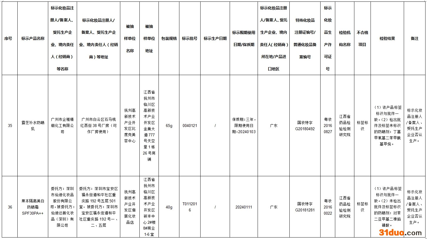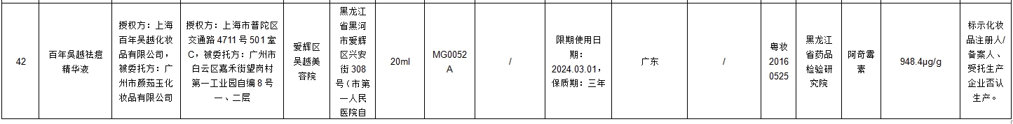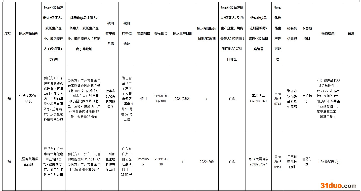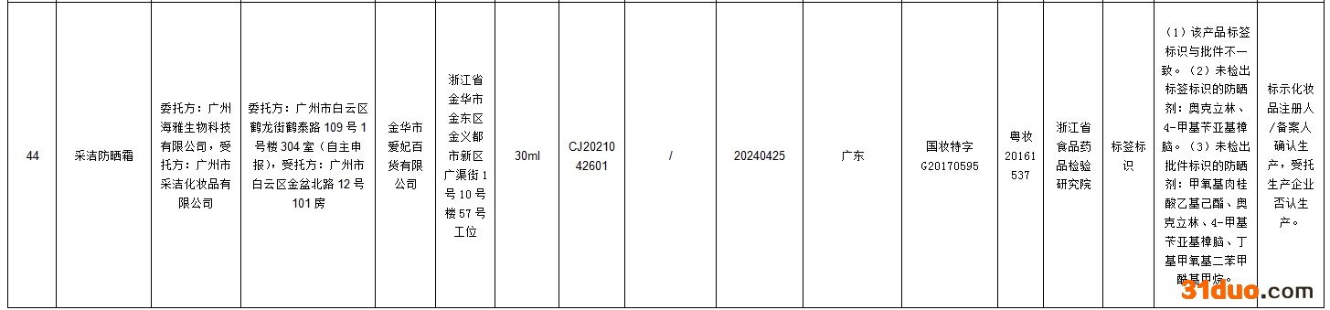 其中42批次不合格产品标签上标示的化妆品注册人、备案人、受托生产企业、境内责任人(经销商)否认生产或者进口过上述产品;2批次不合格产品标签上标示的受托生产企业否认生产过上述产品。