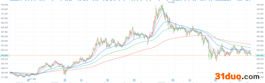 作为拥有国内最大社交平台之一的腾讯,在长达10月之久的调整中,其累计跌幅接近四成,股价也从2月份的高点773港元回调至449港元附近。