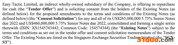 12月16日消息,富力地产(02777.HK)昨日发布公告称,拟以折扣价回购2022年1月到期的共7.25亿美元、年利率5.75%的优先票据。