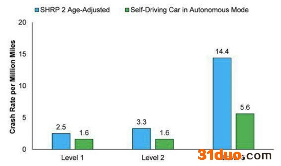 虽然公开数据显示,自动驾驶车辆的事故率比人为事故率低超60%,但Waymo的自动驾驶测试数据也指出,自动驾驶汽车每行驶8950千公里就需要进行一次人工干预,若不进行人工干预可能会发生事故,而人类平均驾驶25万公里才会出一次事故。