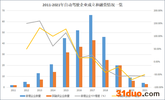 风从硅谷吹向中国。据不完全统计,2013年国内共有13家自动驾驶领域企业注册成立,同比增长160%,其中有7家企业获得股权融资,同比增长133%。资本对自动驾驶的追捧于2016-2017年达到顶峰,约7成新注册的自动驾驶企业同年能成功获得一级市场“输血”。
