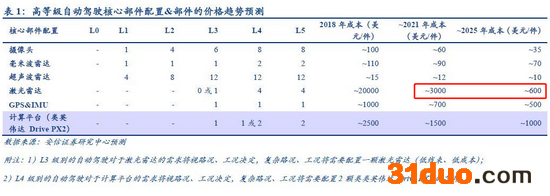 那么如何有效降低成本?一方面可以减少昂贵的核心零部件,但此举可能增加安全风险,后果难以控制。另一方面则是坐等技术迭代成熟,成本大幅下降。据安信证券研究中心预测,自动驾驶核心零件中成本最高的激光雷达有望于2025年降低近8成。