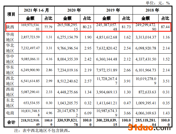 此外,冰峰饮料在陕西地区的营业收入占总营收的七成以上。报告期内,陕西市场占比分别为87.44%、81.73%、80.23%和77.79%。与陕西市场相比,冰峰饮料在其他地区的覆盖却非常有限,报告期内,冰峰饮料在华南、华北、华中、华东等地区的营业收入占比均未超过5%。