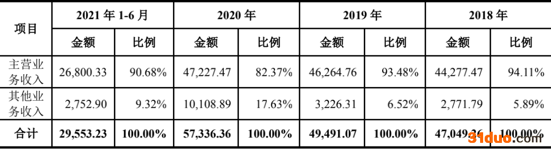 但《红周刊》记者发现,若从营业收入的构成来看,则另有一番风景。主营业务收入方面,2018年至2020年,恒勃股份的主营业务收入分别为4.43亿元、4.63亿元、4.72亿元,各期主营业务收入占营业收入的比例分别为94.11%、93.48%、82.37%。由此可以看出,恒勃股份的主营业务收入占比呈明显的下降趋势。