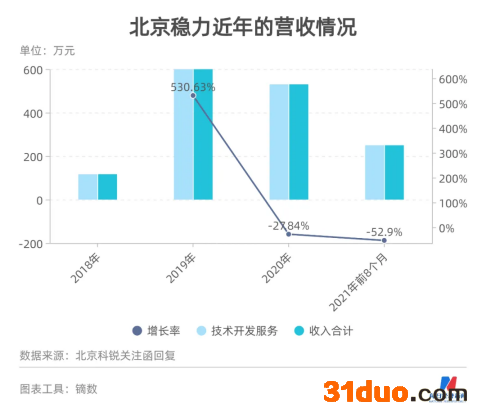 北京科锐回复深交所称,此前北京稳力的营收全部来自于提供技术开发服务,直至2021年,北京稳力才将业务模式变更为同时提供技术开发服务和销售产品。