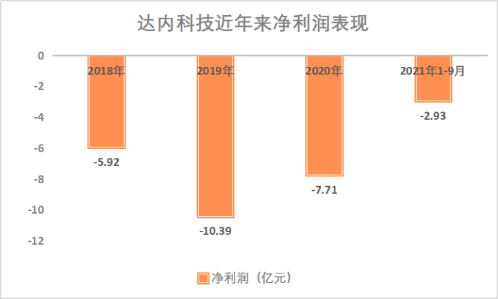 更值得注意的是,达内已连续四年录得净亏损。2018-2021年,达内教育总计净亏损近26.95亿元。