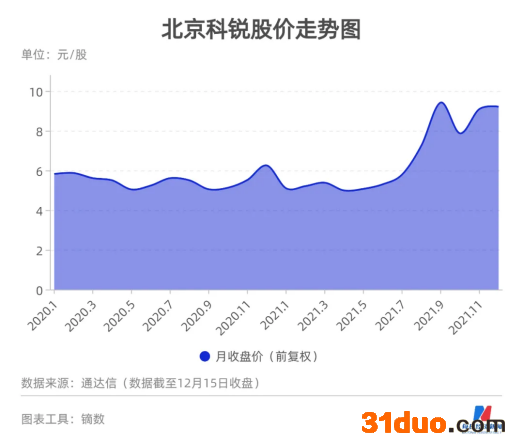这让北京科锐的股价在二级市场打了翻身仗。自付小东入主北京科锐以来,北京科锐股价从每股5.47元(前复权,下同)涨到每股最高10.61元,涨幅接近翻倍。