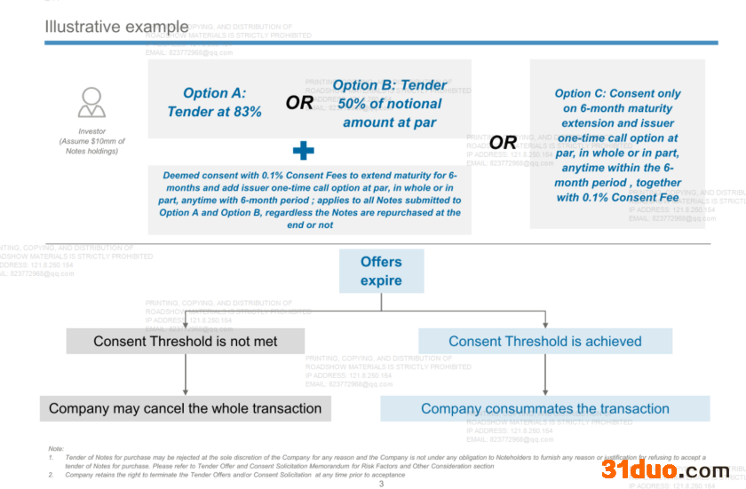 但投资者或许并没有别的选择,如果不在上述两个选项中做出选择,有可能颗粒无收——富力地产还公告称,如果要约收购及征得展期的同意书未能成功完成,公司可能无法于到期时完全赎回票据。