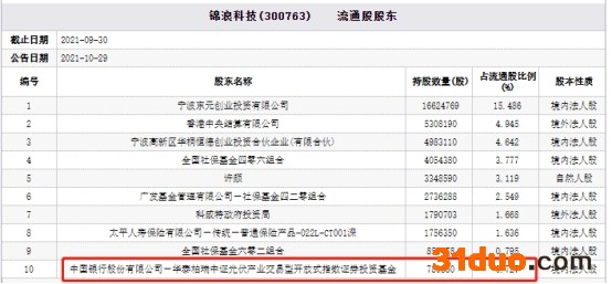 截至今年三季度末,中国银行股份有限公司-华泰柏瑞中证光伏产业交易型开放式指数证券投资基金持有锦浪科技78.04万股,占流通股比例为0.727%,是其第十大流通股东。