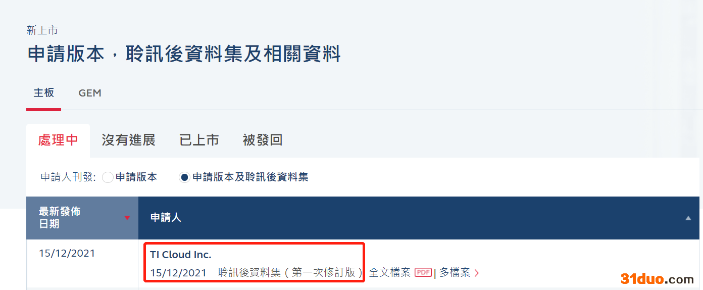 中华网财经12月17日讯 中华网财经了解到,据港交所12月15日披露,企业云服务提供商天润云股份有限公司(TI Cloud Inc.)通过港交所上市聆讯,中金公司为独家保荐人。