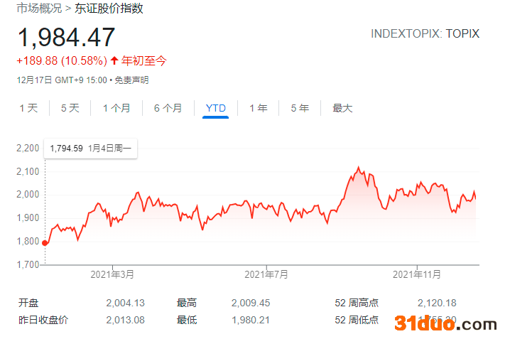财联社(上海,编辑 卞纯)讯,由于长时间的疫情紧急状态削弱了日本的支出和增长,日股今年的表现相较美股和欧股等发达国家同行大为逊色。在令人失望的2021年接近尾声之际,华尔街分析师现在预计,受益于低估值、低通胀和高疫苗接种率等因素,日股明年势将缩小与全球同行的差距。