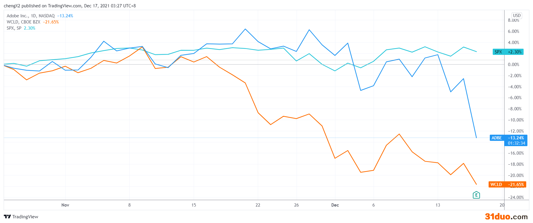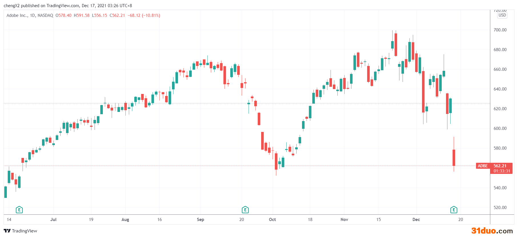抛开预期的利空,Adobe在刚刚过去的第四财季继续刷新了营收历史新高,在数字媒体部门的带动下,Q4营收同比上涨20%至41.1亿美元。然而,通胀高企和对加息周期的担忧使得投资者开始抛售高市盈率的成长股避险,也使得行业板块普遍受挫。