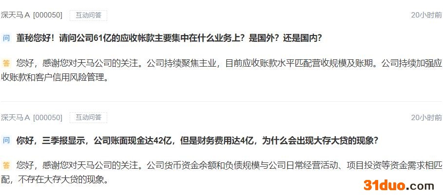 公司的资产负债状况也引起投资者的关注,深交所互动易上有投资者问:“公司61亿的应收张狂主要集中在什么业务上?是国外还是国内?”对此深天马董秘回应称,公司持续聚焦主业,目前应收账款水平匹配营收规模及账期。公司持续加强应收账款和客户信用风险管理。