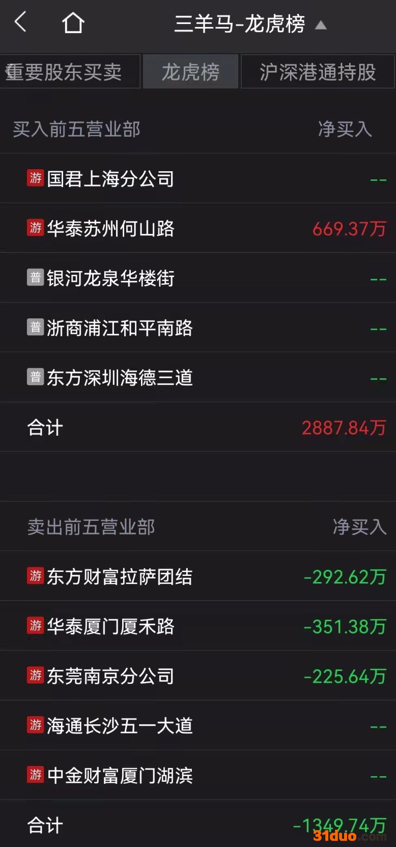 连续14个涨停的三羊马更是已经11次登上龙虎榜,游资激烈博弈。从12月17日的龙虎榜来看,买一和买二席位都是“游资大本营”,而卖方的前五席位更是全部被游资盘踞的营业部占据。