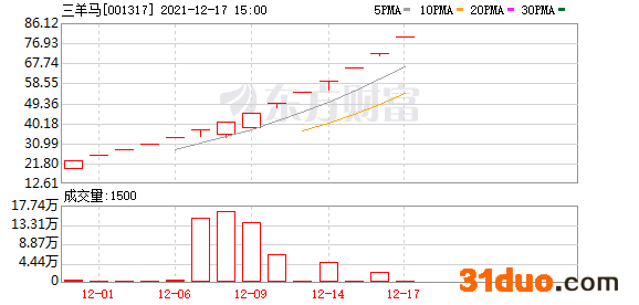 三羊马17日开盘一字涨停,这已经是该股自11月30日上市以来的第14个涨停了。
