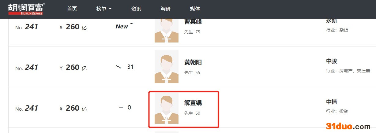 2021年,解直锟以260亿身价,登上胡润百富榜第241名。
