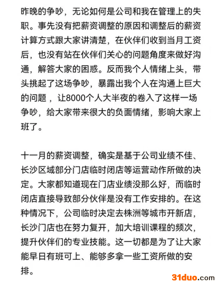 12月17日下午,据报道,吕良已就昨日的言论发布内部道歉信。吕良称,对不住8000位信任公司、一起努力想办法抗住这个冬天的伙伴……事先没有把薪资调整的原因和调整后的薪资计算方式跟大家讲清楚。