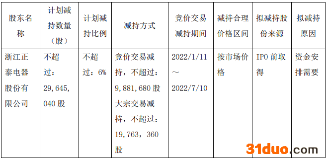 中国经济网北京12月18日讯 中控技术(688777.SH)昨晚发布的持股5%以上股东减持股份计划公告显示,因资金安排需要,浙江正泰电器股份有限公司(以下简称“正泰电器”)拟通过集中竞价交易及大宗交易方式减持其持有的中控技术股份合计不超过2964.50万股,减持比例不超过中控技术股份总数的6%。