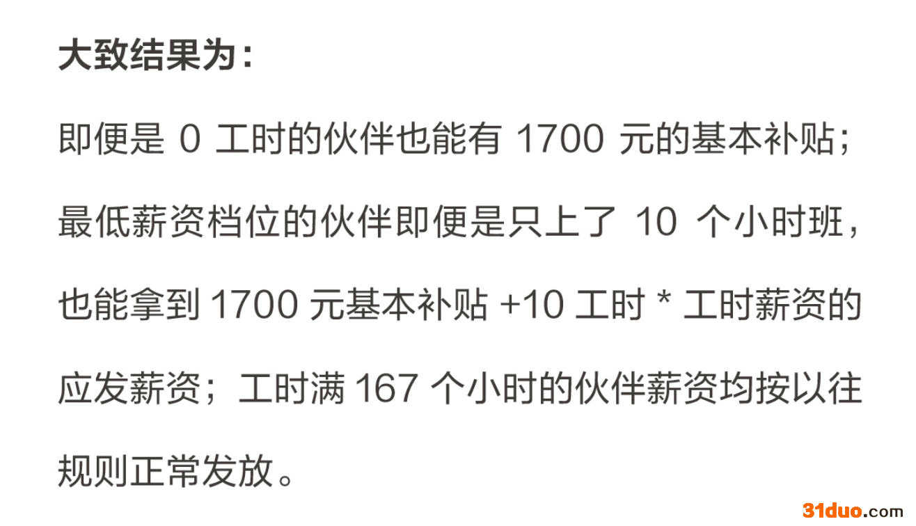 12月17日下午,茶颜悦色官方微博也就此事发表回应。内容显示,由于11月的临时闭店,导致许多员工出现工时不足、甚至0工时的情况,而11月薪资调整的逻辑是保证哪怕0工时的员工也能够有1700元基本补贴,工作满167个小时的员工工资正常发放。