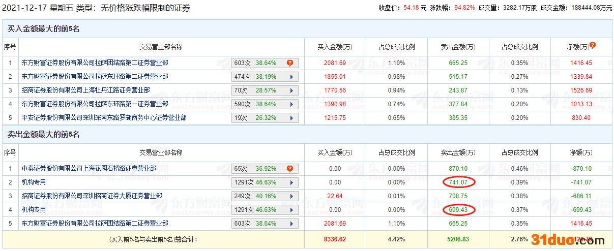 风光股份上市首日龙虎榜:2机构席位卖出1441万元
