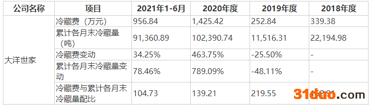 此外,大洋世家有近4成的收入来自外销,可以看出,公司产品出口在主营业务收入中占有比较重要的地位。而这其中又以日本为主,其为全球重要的超低温金枪鱼消费市场。也因此,冷鲜储藏也成为了大洋世家成本中的重头,报告期内公司的冷藏费持续增长,甚至2020年较2019年增长了近6倍。