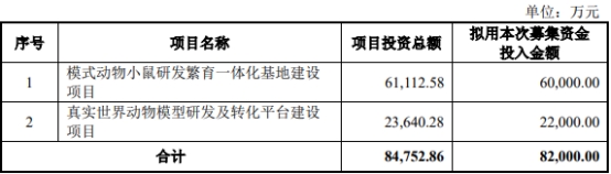 集萃药康此次拟募集资金8.20亿元,其中,6.00亿元用于模式动物小鼠研发繁育一体化基地建设项目,2.20亿元用于真实世界动物模型研发及转化平台建设项目。