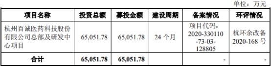 百诚医药最终募集资金净额比原计划多12.13亿元。百诚医药于2021年12月15日披露的招股说明书显示,公司拟募集资金6.51亿元,全部用于杭州百诚医药科技股份有限公司总部及研发中心项目。