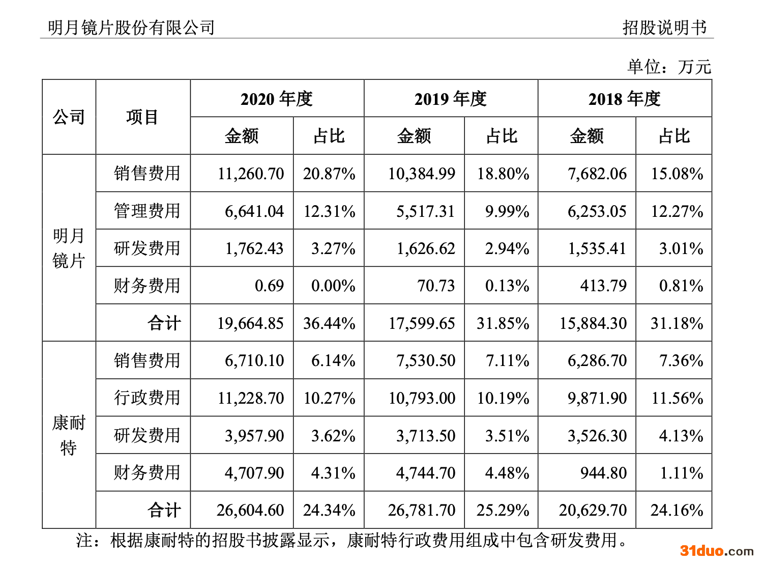 康耐特在招股书中提到,2018年-2020年,自己的研发成本分别占到当年收入的4.1%、3.5%和3.6%;而明月镜片的研发费用占比则是3.01%、2.94%和3.27%。虽然差距并不大,但康耐特的研发投入确实要高过明月镜片。