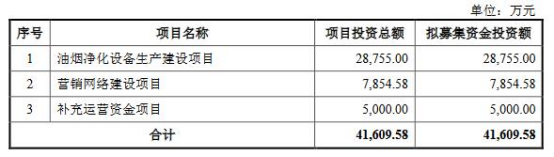 保丽洁原拟公开发行股票数量不超过1736.67万股(不含采用超额配售选择权发行的股份数量),不低于发行后总股本25%。保丽洁原拟募集资金4.16亿元,计划分别用于油烟净化设备生产建设项目、营销网络建设项目、补充运营资金项目。