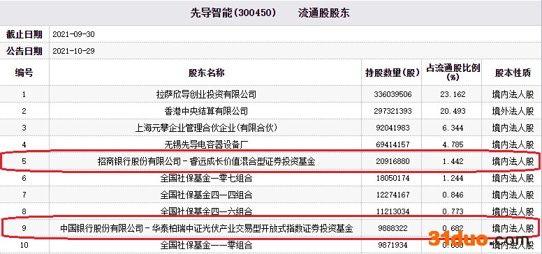 先导智能前十大流通股股东中,招商银行股份有限公司-睿远成长价值混合型证券投资基金为第五大流通股股东,持股2091.69万股,占流通股比例为1.442%;中国银行股份有限公司-华泰柏瑞中证光伏产业交易型开放式指数证券投资基金为第九大流通股股东,持股988.83万股,占流通股比例为0.682%。