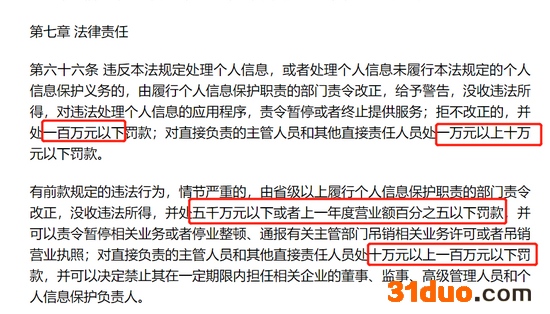 在今年11月1日起实施的《个人信息保护法》中,也有对此类情况的相关规定。“《个人信息保护法》的处罚比较重,不仅处罚单位,还处罚相关主管人员,最高达五千万元以下或者上一年度营业额百分之五以下罚款;对直接负责的主管人员和其他直接责任人员处十万元以上一百万元以下罚款,并可以决定禁止其在一定期限内担任相关企业的董事、监事等职务。”徐延轩说,这次开罚单的是市场监督管理局,他们是在市场巡查过程中发现的问题,所以依据的是消保法。