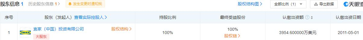 经中国经济网记者查询发现,公司成立于2003年7月,注册资本3954.6万美元,由宜家(中国)投资有限公司全资持股。